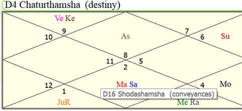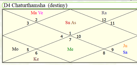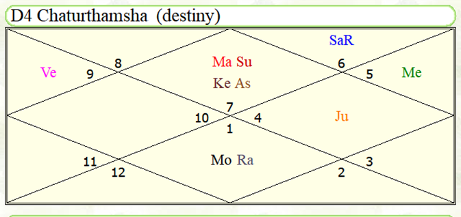 Chaturthamsa Analysis: Rahu Moon again conjunct in itself is enough, they are also aspected by 9th Lord Venus.